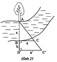 \(\frac{{AB}}{{AB'}} = \frac{{BC}}{{B'C'}} \Rightarrow \frac{x}{{x + h}} = \frac{a}{{a'}} \Rightarrow xa' = a\left( {x + h} \right) \Leftrightarrow xa' = ax + ah\)