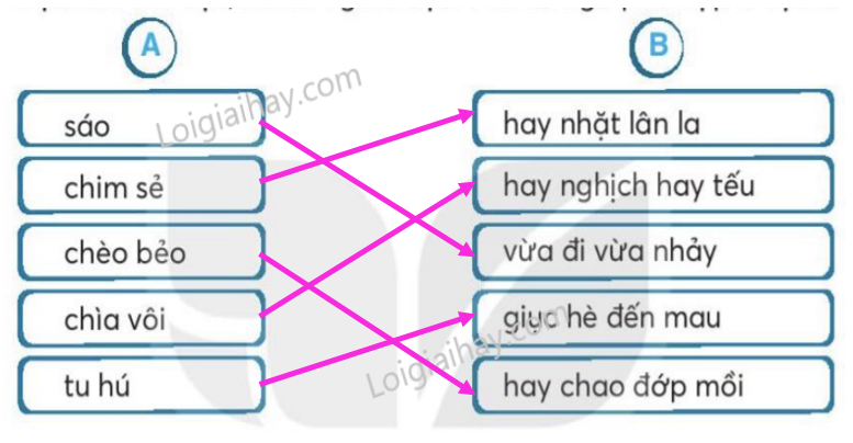 Dựa vào bài đọc, nối từ ngữ ở cột A với từ ngữ phù hợp ở cột B.