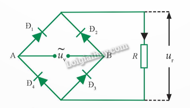 - Giả sử trong nửa chu kì đầu của điện áp vào, A là cực dương, B là cực âm, diode Đ1 và Đ3 phân cực thuận, dòng điện từ A đi qua Đ1, qua điện trở R, qua Đ3 và về B. Trong nửa chu kì tiếp theo, cực B dương, cực A âm, diode Đ2 và Đ4 phân cực thuận, dòng điện từ B đi qua Đ2, qua R, qua Đ4 về A.