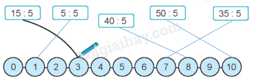 Tính nhẩm kết quả phép tính dựa vào bảng chia 5 rồi nối với số tương ứng.