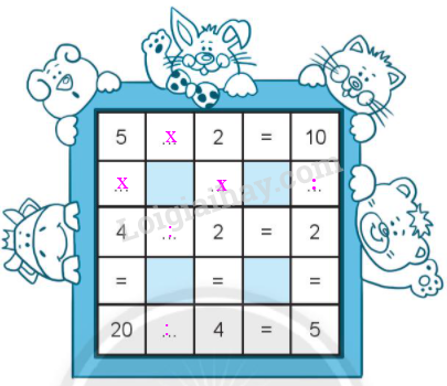 Viết dấu phép tính ( x , : ) vào chỗ chấm.