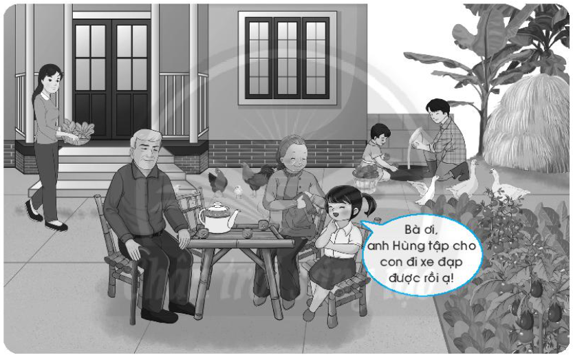 Em quan sát kĩ bức tranh xem gia đình trong đó có mấy thế hệ cùng sinh sống, mỗi thế hệ có những ai?