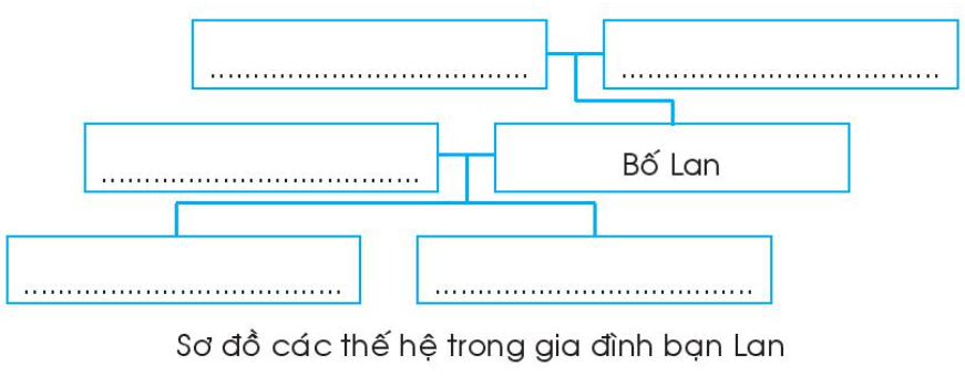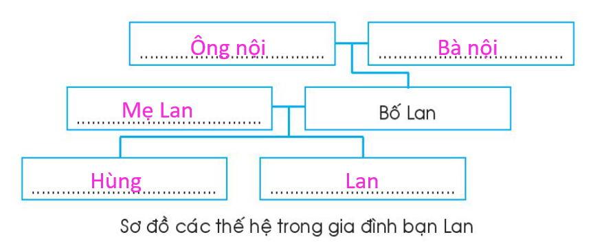 Quan sát tranh và viết vào chỗ (…) để hoàn thành Sơ đồ các thế hệ trong gia đình bạn Lan.