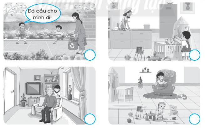 Em quan sát kĩ các hình ảnh và xem bạn nhỏ trong đó đang làm gì? Em có đồng tình với những hành động đó không?