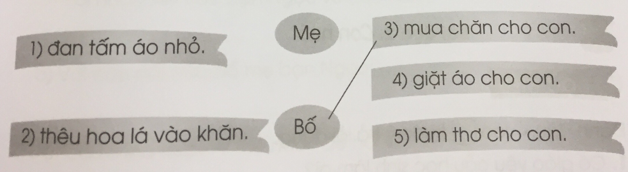 Mẹ và bố chuẩn bị những gì để đón con ra đời? Nối đúng: