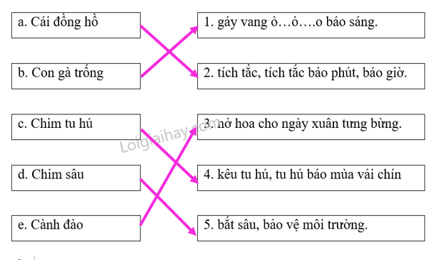e. Cành đào 5. bắt sâu, bảo vệ môi trường.