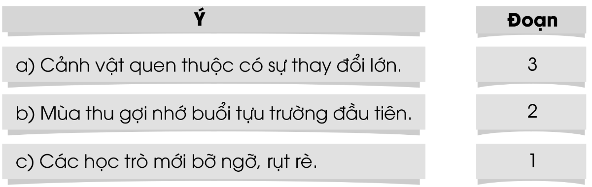 a) Mỗi đoạn văn nêu một ý.