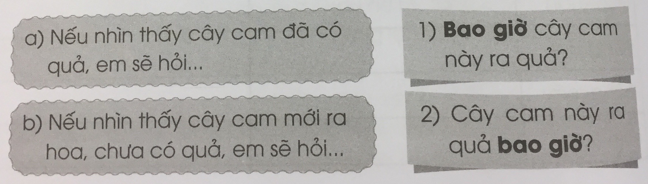 Mỗi ý trong đoạn 1 nêu một lợi ích của cây xanh. Đó là những lợi ích gì? Đánh dấu tích vào ô thích hợp. Phong tục Tết trồng cây ở nước ta có từ bao giờ. Nối đúng. Em sẽ hỏi thế nào? Nối đúng. Dựa vào gợi ý từ thời gian biểu của bạn Thu Huệ (SGK, trang 17), hãy lập thời gian biểu một ngày đi học của em.