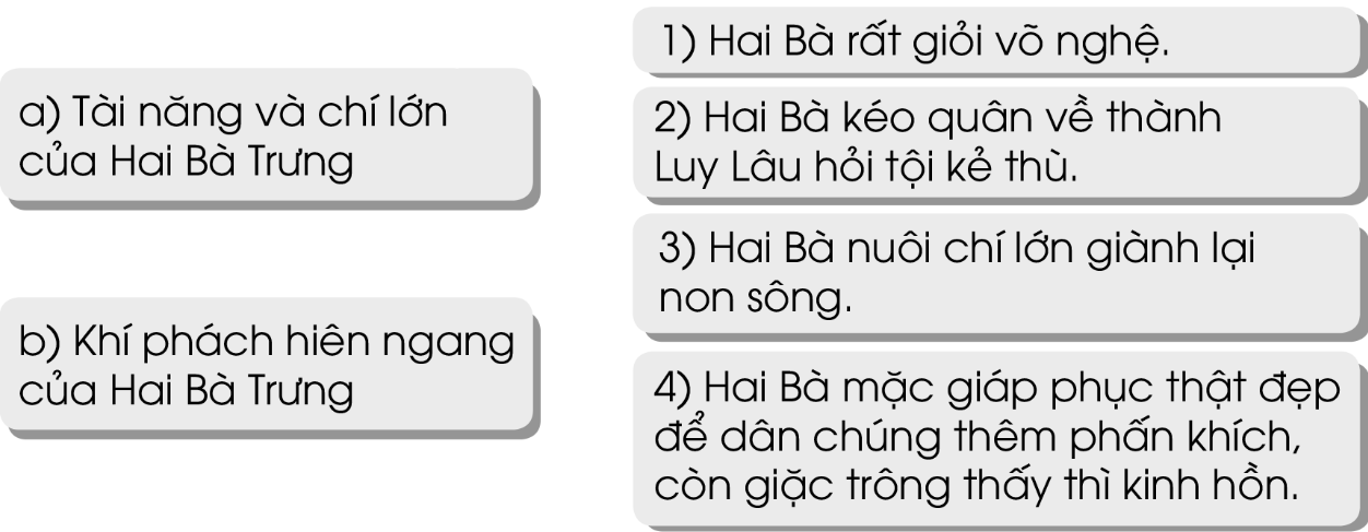 a) Tài năng và chí lớn của Hai Bà Trưng: 1, 3