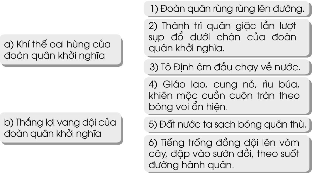 Những hình ảnh nào nói lên khí thế oai hùng và thắng lợi vang dội của đoàn quân khởi nghĩa? Nối đúng: