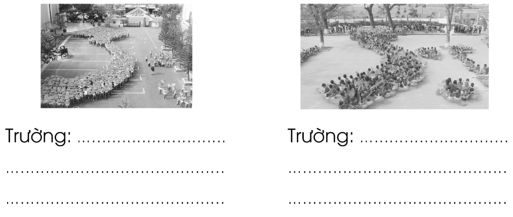 Dựa vào hình minh họa trong bài đọc, hãy kể thêm tên một số trường tổ chức lễ chào cờ đặc biệt hướng về biển, đảo. Viết đúng tên trường dưới mỗi tranh: