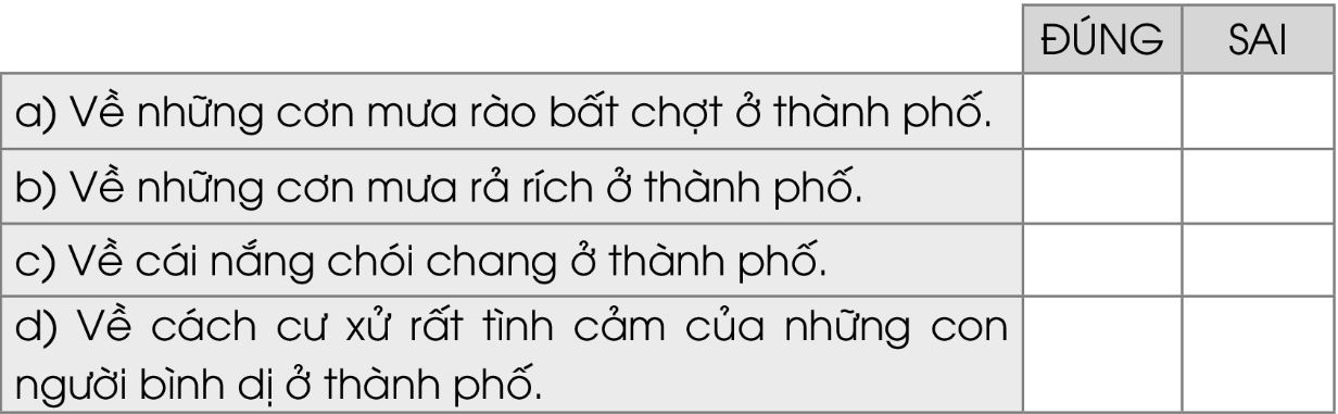 a. Về những cơn mưa rào bất chợt ở thành phố. |