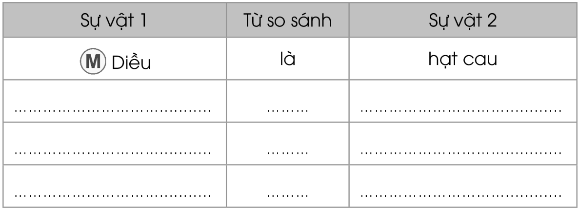 Viết các từ ngữ của một câu có hình ảnh so sánh trong bài thơ vào chỗ phù hợp trong bảng sau: