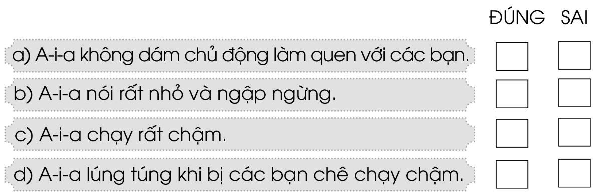 Những chi tiết nào cho thấy A-i-a rất rụt rè? Đánh dấu tích vào ô phù hợp.