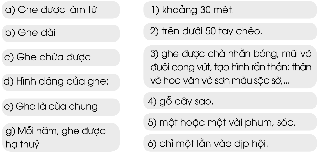 Những chiếc ghe ngo có gì đặc biệt? Nối đúng: