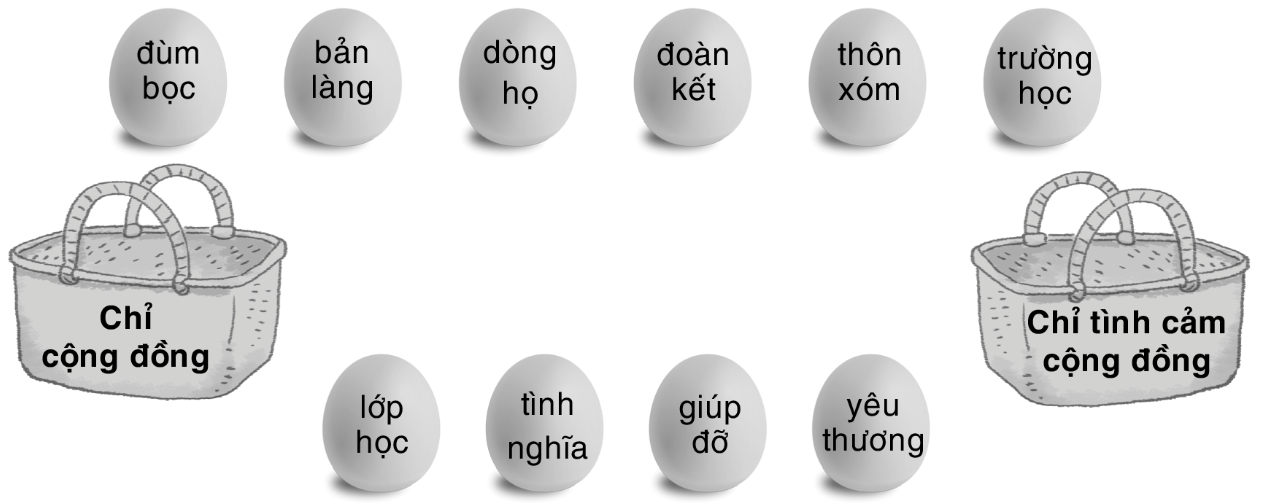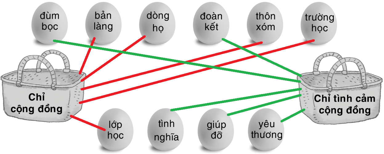 Nối các từ ngữ dưới đây vào nhóm thích hợp: