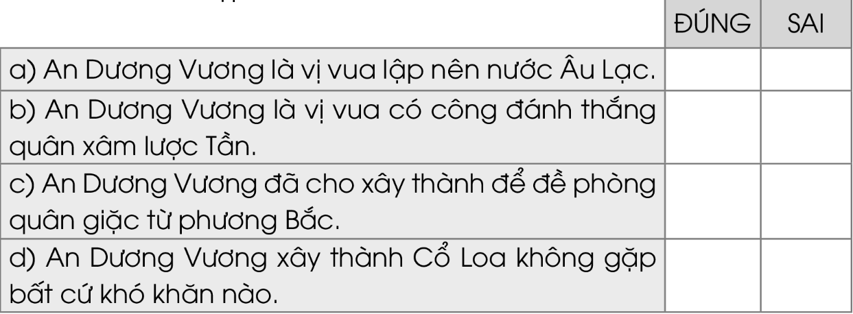Qua đoạn 1, em biết điều gì về vua An Dương Vương? Đánh dấu √ vào ô thích hợp: