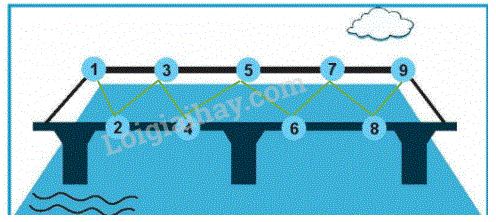 - Dùng thước thẳng, nối lần lượt các số theo thứ tự từ 1 đến 9 để có cây cầu.