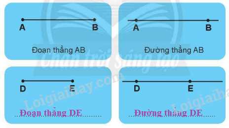 Quan sát ví dụ mẫu rồi viết cách đọc tên đoạn thẳng, đường thẳng vào chỗ chấm cho thích hợp.