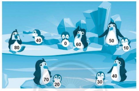 Nối hai số có tổng bằng 80 để giúp chim mẹ tìm con.