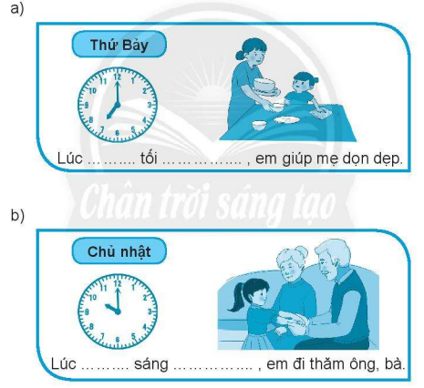 a) Lúc 7 giờ tối thứ Bảy, em giúp mẹ dọn dẹp.