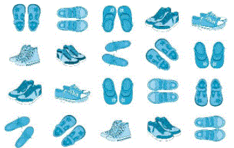 Ta thấy mỗi hàng đều có 5 đôi giày, có 5 hàng như vậy, đếm thêm 5 đơn vị ta biết được số đôi giày.