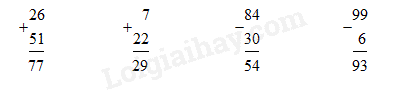 26 + 51 7 + 22 84 – 30 99 – 6