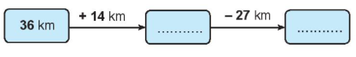 Thực hiện tính kết quả các phép cộng, phép trừ rồi viết số và đơn vị km vào chỗ chấm.