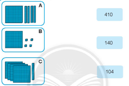 Em xác định số ô vuông nhỏ trong mỗi hình A, B, C rồi nối với số tương ứng.