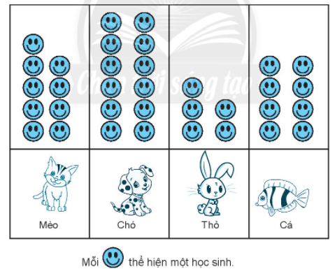 a) Quan sát biểu đồ tranh, em đếm số học sinh thích mèo, chó, thỏ và cá.