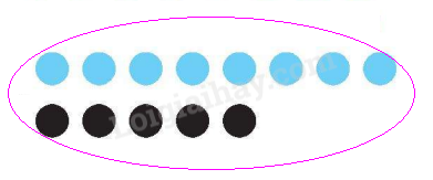 Em khoanh vào số hình tròn màu xanh so với số hình tròn màu đen.