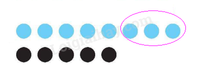 Khoanh vào phần nhiều hơn của số hình tròn màu xanh so với số hình tròn màu đen.