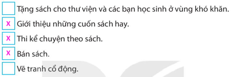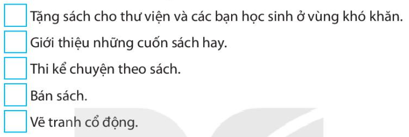 Đánh dấu x vào □ trước ý thể hiện hoạt động diễn ra trong Ngày hội đọc sách ở trường em.