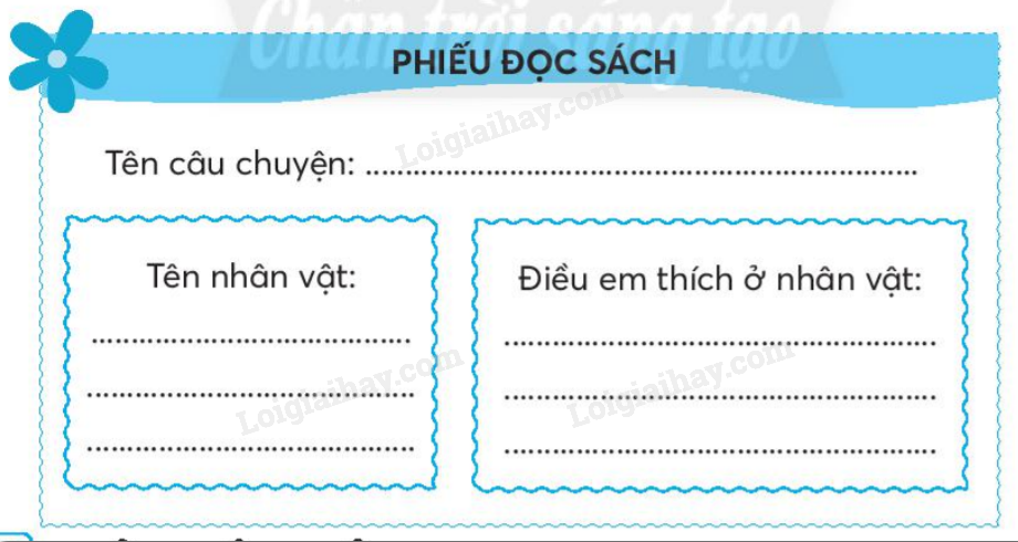 Viết vào Phiếu đọc sách nội dung đã trao đổi với bạn về một nhân vật em thích ở bài tập 1.