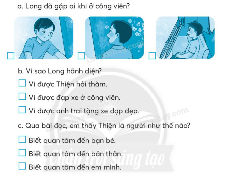 Dựa vào bài đọc SGK, tr.80, đánh dấu vào ô trống trước tranh hoặc ý trả lời đúng.