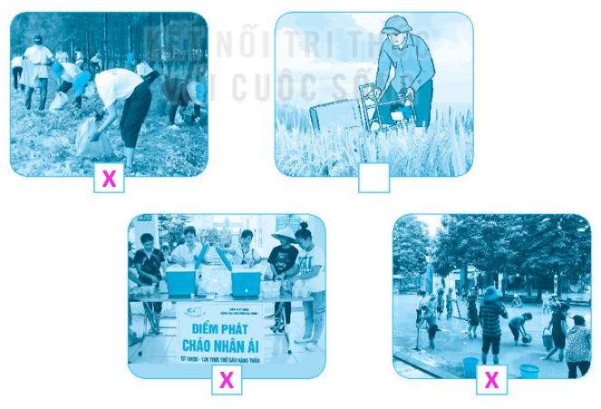 Đánh dấu x vào □ dưới những hình mô tả công việc tình nguyện không nhận lương.