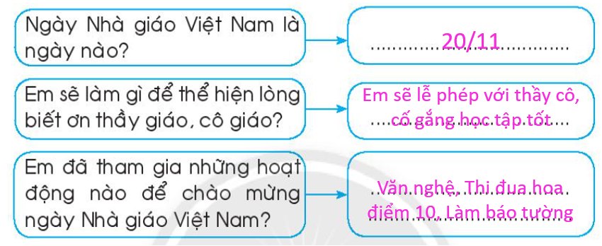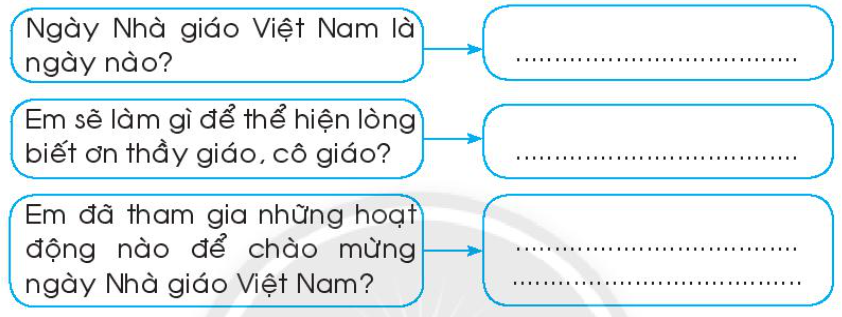 Em đọc kĩ các câu trả lời ở cột bên trái để viết câu trả lời phù hợp.