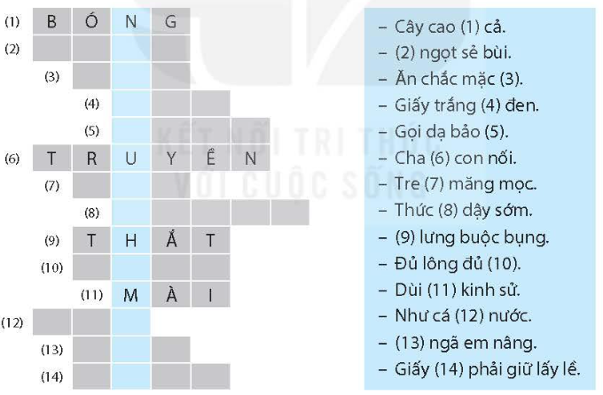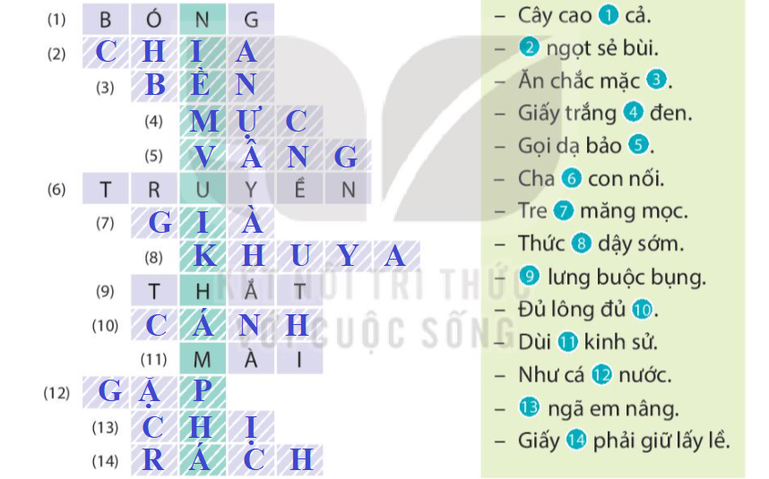 b. Viết lại từ ngữ xuất hiện ở hàng dọc màu xanh.