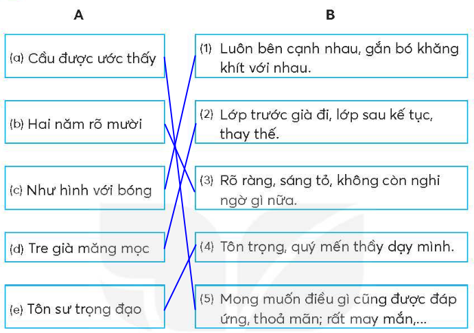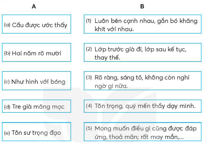 Em đọc kĩ các thành ngữ và nghĩa để nối thích hợp.