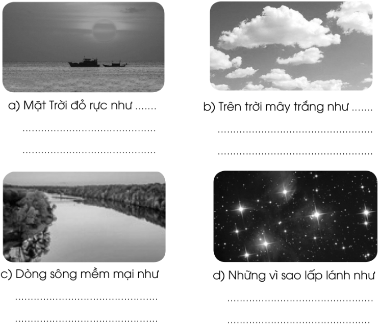 Viết từ ngữ thích hợp với mỗi chỗ trống để tạo thành câu văn có hình ảnh so sánh:
