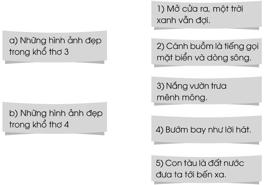 Tìm những hình ảnh đẹp gợi tả tương lai ở khổ thơ 3 và 4. Nối đúng: