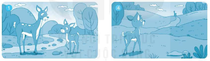 Quan sát tranh (SHS Tiếng Việt 4, tập một, trang 72), đọc lời dưới tranh rồi tóm tắt câu chuyện Nai con Bam-bi.