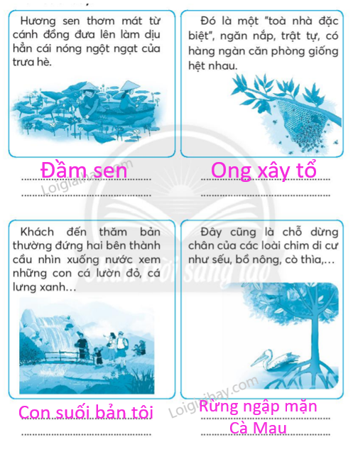 Viết tên bài đọc đã học phù hợp với từng hình ảnh và thông tin dưới đây: