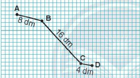 Độ dài đường gấp khúc ABCD bằng tổng độ dài 3 đoạn thẳng AB, BC và CD.