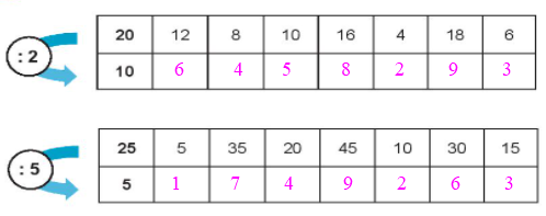 Tính nhẩm dựa vào bảng chia 2 và bảng chia 5.