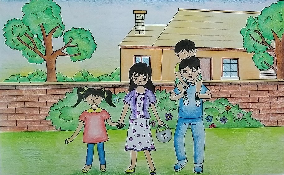 a. Vẽ hoặc dán ảnh gia đình em vào khung dưới đây.