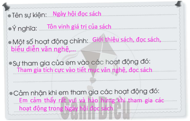 Chọn một trong các sự kiện được tổ chức ở trường và trình bày theo gợi ý dưới đây.