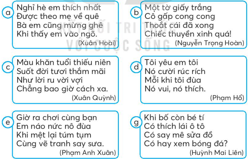 Em đọc kĩ các các khổ thở để tìm những từ ngữ chỉ tình cảm, cảm xúc.
