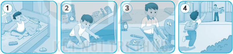 Mẹ: - (1) Trời ơi! (2) Sao con đi ngủ sớm thế? (3) Dậy chuẩn bị bài ngày mai đi!