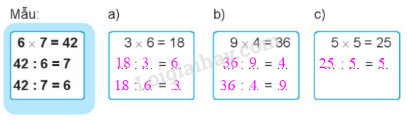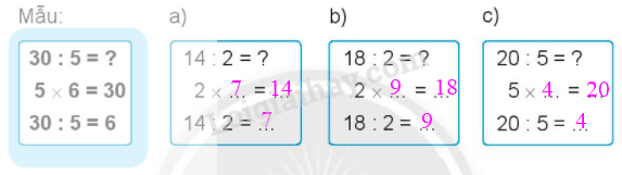 Tìm kết quả phép chia dựa vào phép nhân (xem mẫu):
